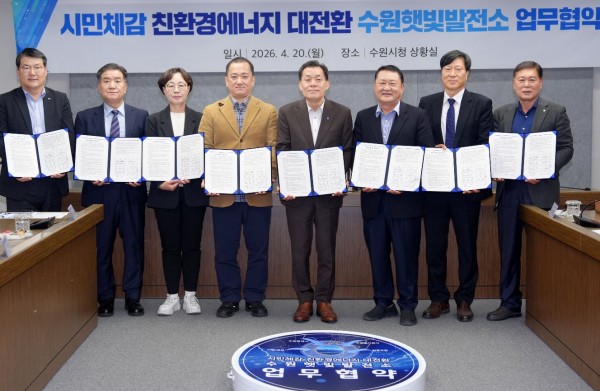 이지영 기자 2026-04-21수원특례시가 수원햇빛발전소 활성화를 위한 협력체계를 구축하고, ‘시민체감 친환경에너지 대전환’에 나선다.(사진제공: 수원시)수원시와 수원도시공…