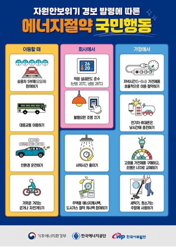 정부가 에너지 수요 억제를 위한 고강도 조치에 나섰다. 기후에너지환경부는 자원안보 위기 단계가 ‘경계’로 격상됨에 따라 공공부문 차량 운행을 기존 5부제에서 2부제로 강화하고 공…